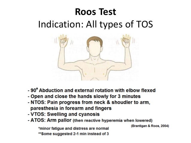 - Positive sign : diminished radial pulse and/or numbness, tingling on the hands and fingers
